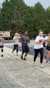 The Alpha version of the workout is completed while wearing a 20-pound weighted vest or body armor. Two participants embraced this extra challenge – Tara Craig, SC Highway Patrol Major Divisions of Strategic Services and Planning, and John Philibert, retired Army veteran currently employed as a civilian at Fort Jackson.