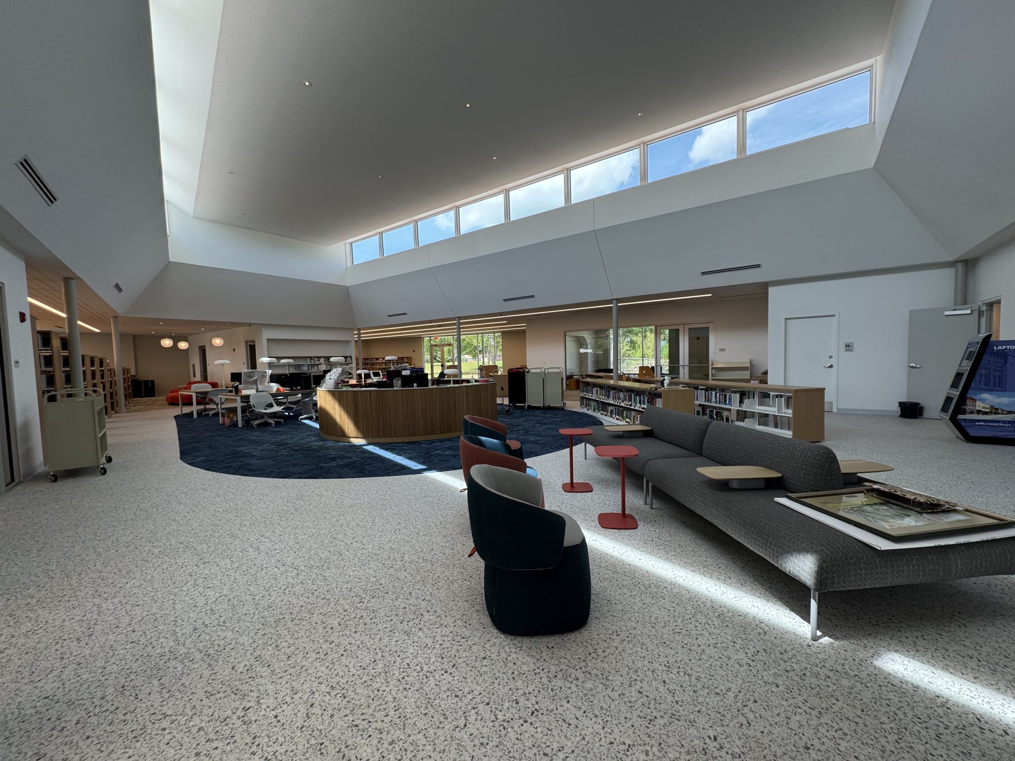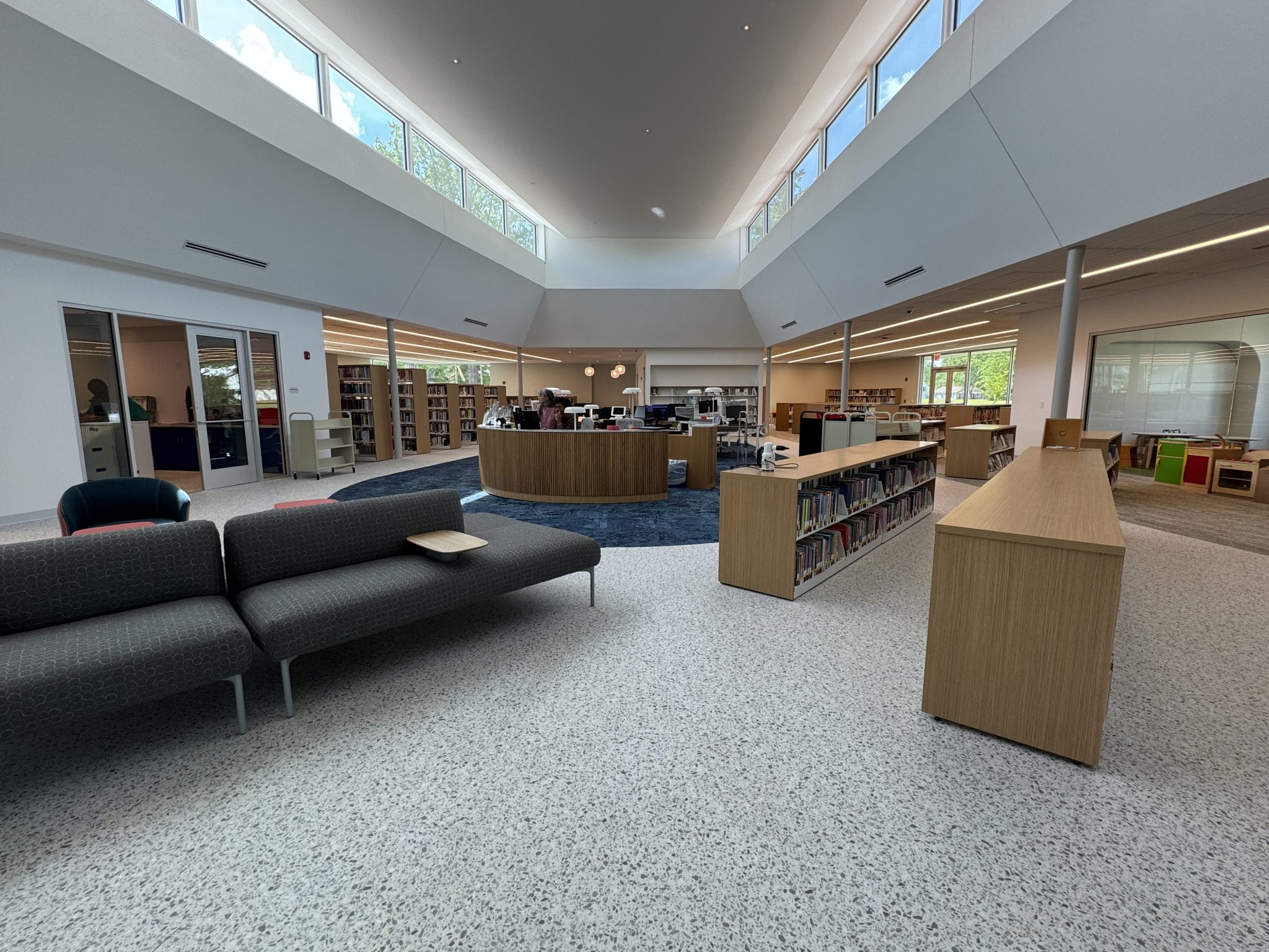 Centrally Located Circulation Desk – Ensures staff can easily assist patrons throughout the space.