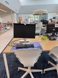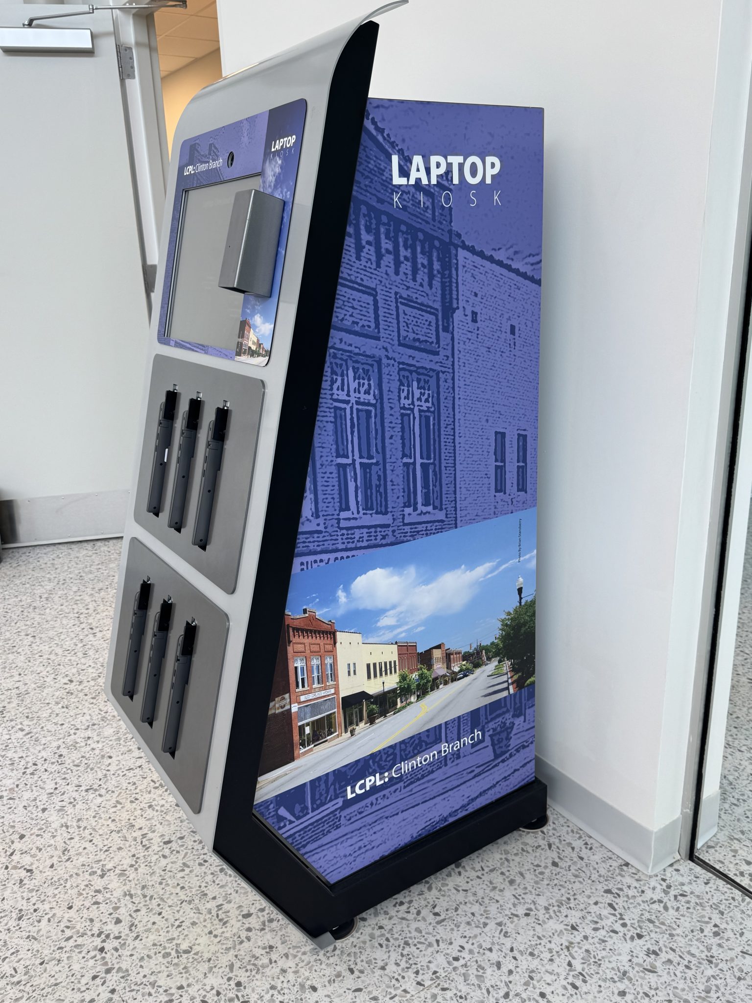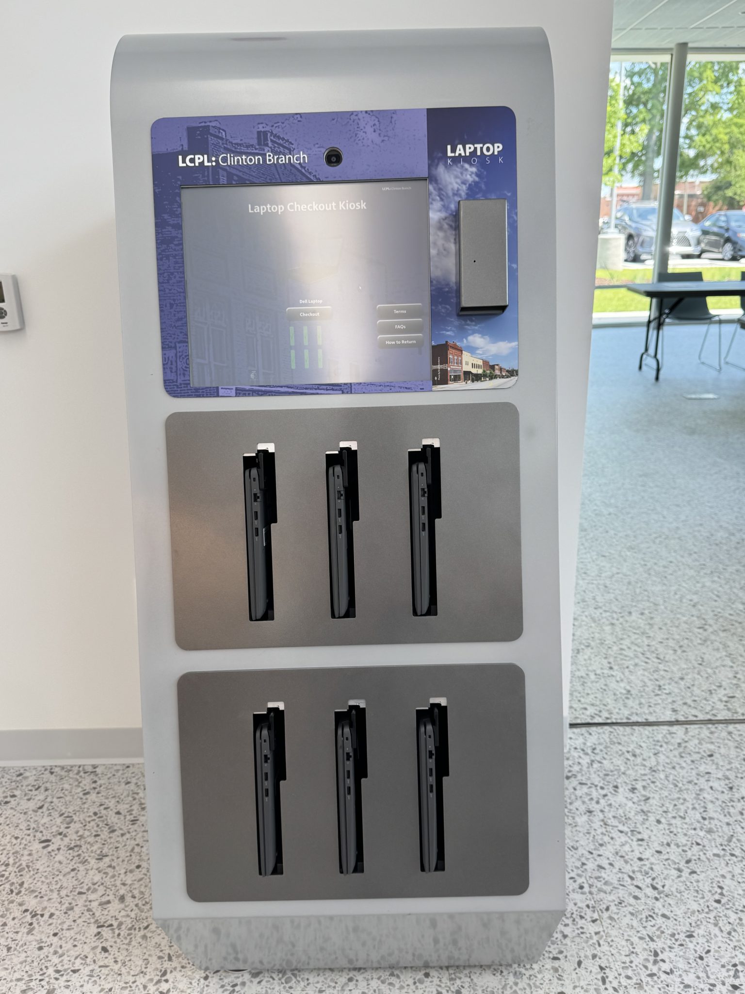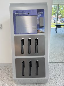 Laptop Kiosk & Computer Stations – Patrons can check out laptops for up to four hours for in-library use or access one of eight desktop computers.