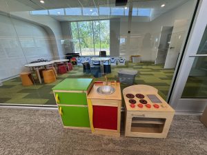 Two Study Rooms – Equipped with Smart Boards and seating for five, these flexible rooms are available for tutoring sessions, virtual doctor visits, small meetings, or parent-supervised student use.