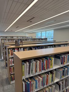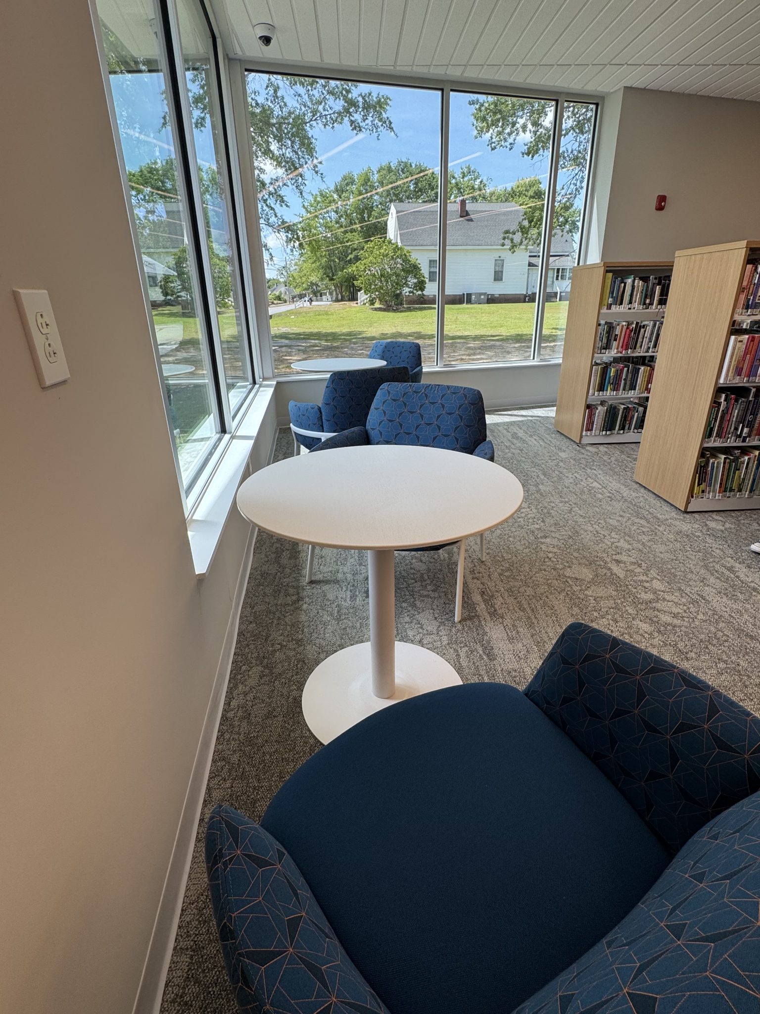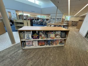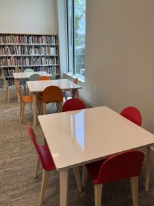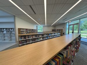 Children’s Area & Juvenile Room – The children’s area offers kid-friendly tables, chairs, activities, and a conveniently located family restroom. The Juvenile Room, furnished through a donation in memory of Leslie Anne Cooper Jackson, features a projector for movie screenings, Minecraft competitions, and interactive story times.
