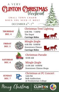 A Very Clinton Christmas offers small-town charm when the community needs it most. With holiday lights, local shopping, beloved traditions, and festive cheer around every corner, this weekend promises to usher in the season Clinton-style.