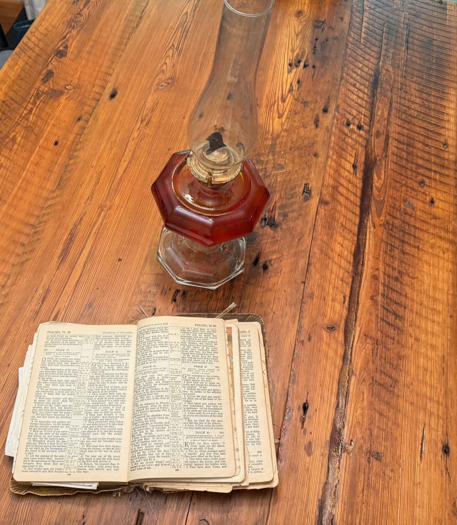 Two old friends, the family Bible and the Kerosene Lamp. Photo by Elizabeth Poland Shugg