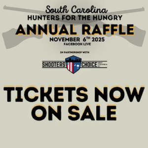For every ticket purchased, South Carolina Hunters for the Hungry can process and distribute more meals to communities statewide. The organization works with hunters and processors to provide nutritious venison to food banks and hunger relief organizations, ensuring that every deer donated helps put food on the table for families in need.