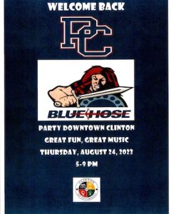 The PC Block Party will be held on Thursday, August 24 from 5-9 pm in downtown Clinton.