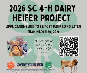February 18, 2026Laurens County 4-H is encouraging eligible youth to apply for the 2026 South Carolina 4-H Dairy Heifer Project, a hands-on program that allows participants to raise, manage, show, and market a dairy heifer while developing valuable life and leadership skills.