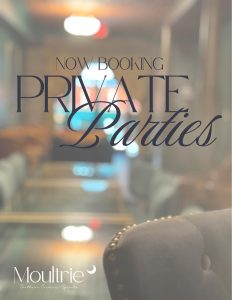 Holiday party bookings are now open. To reserve your date in The Fox Hole, visit moultrie-sc.com (https://moultrie-sc.com/) and submit an inquiry through the website.