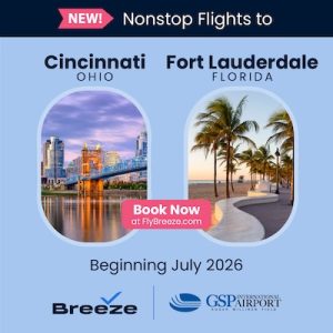 The addition of these routes continues Breeze Airways’ rapid expansion at Greenville-Spartanburg International Airport. Since launching service at GSP, the airline has focused on providing affordable nonstop flights to destinations that previously required connections.
