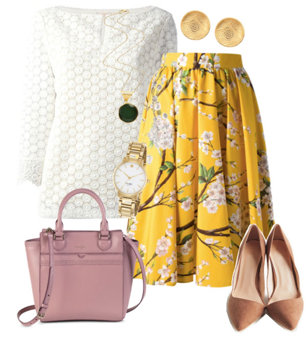 To further the professionalism of a floral print in the office you can’t go wrong pairing it with a white shirt. Whether you choose a crisp,starched oxford or work in another spring trend like lace; the starkness alone provides the necessary balance.