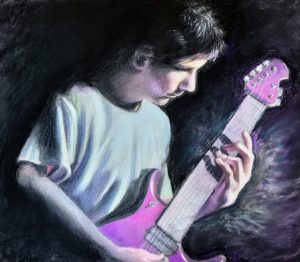Fleischer’s work focuses primarily on pastel portraits, a medium she chooses for its tactile nature and vibrant, velvety finish. Her current collection at the Arts Center explores themes of inherent beauty and authenticity, moving beyond traditional physical perfection to capture what she describes as the unique essence of every soul.