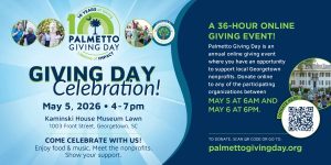 April 13, 2026The clock is ticking, and the energy in Georgetown County is electric. Palmetto Giving Day 2026—the highly anticipated 36-hour online giving challenge—is officially here, uniting donors, local businesses, and nonprofits in a shared mission to strengthen the place we call home.