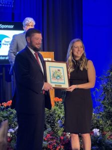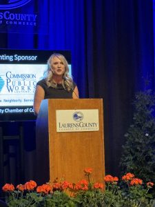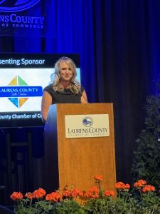 At the Annual Chamber Awards and Dinner Meeting, Amanda Munyan, President and CEO of the Laurens County Chamber of Commerce, delivered a brief speech expressing gratitude to attendees, recognizing key contributors like Representative Mark Willis and President Gustafson. Munyan highlighted the Chamber’s growth, thanked outstanding team members, and acknowledged the vital role of the Board of Directors in the organization’s success.