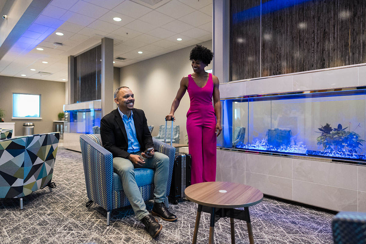 The renovation adds nearly 8,000 square feet to the terminal, bringing the total to over 12,700 square feet. The project includes a modernized interior and exterior, expanded lobby and customer service areas, upgraded restrooms, and new amenities for passengers, pilots, and flight crews. Inside the terminal, guests will find a refreshment bar with complimentary snacks and beverages and modern lounge seating. The terminal also includes private seating areas, conference rooms, and a dedicated pilot lounge with quiet rooms and shower facilities.