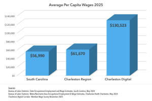 December 2, 2025The Charleston Digital Corridor (CDC) announced today that companies participating in its 2025 Annual Wage & Job Growth Survey reported an average per-capita wage of $130,522, the highest since wage tracking began in 2003.
