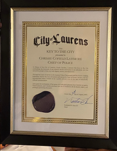 During her tenure as Chief, Latimore has pursued the process of accreditation for the Laurens Police Department and worked hard to modernize the department. Her work and leadership have set high standards that will continue to have a positive impact internally and in the community.