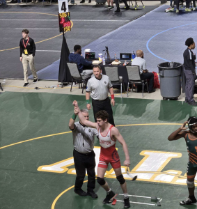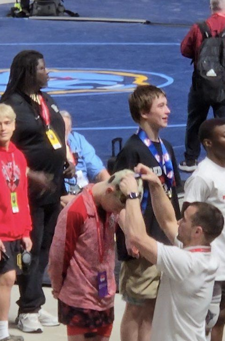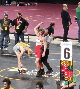 Three Clinton wrestlers finished on the podium in their respective weight classes. Mario Del Vecchio captured the State Championship at 165 pounds, securing the title with a dominant performance and bringing home gold for the Red Devils.