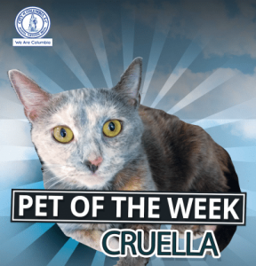Meet Animal Services’ new Pet of the Week, Cruella. Cruella is a 1-year-old, blue cream tortie, domestic short-hair mix female. Cruella is not a big fan of other cats but she is affectionate with people. Cruella has a very unique meow that makes her seem mean (which is how she got her name), however she is very sweet! This loving “furbaby” has already been spayed, micro-chipped, and is currently ready to meet her “furever” family. (ID# A244128).