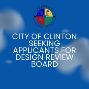 October 6, 2025The City of Clinton Planning Department is now accepting applications for openings on the Design Review Board. Applications are available at the M.S. Bailey Municipal Center, located at 211 North Broad Street, Suite A, Clinton, SC, as well as online at www.cityofclintonsc.com.