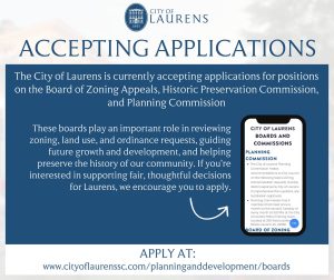 City of Laurens Seeks Applicants for Key Planning and Preservation Boards