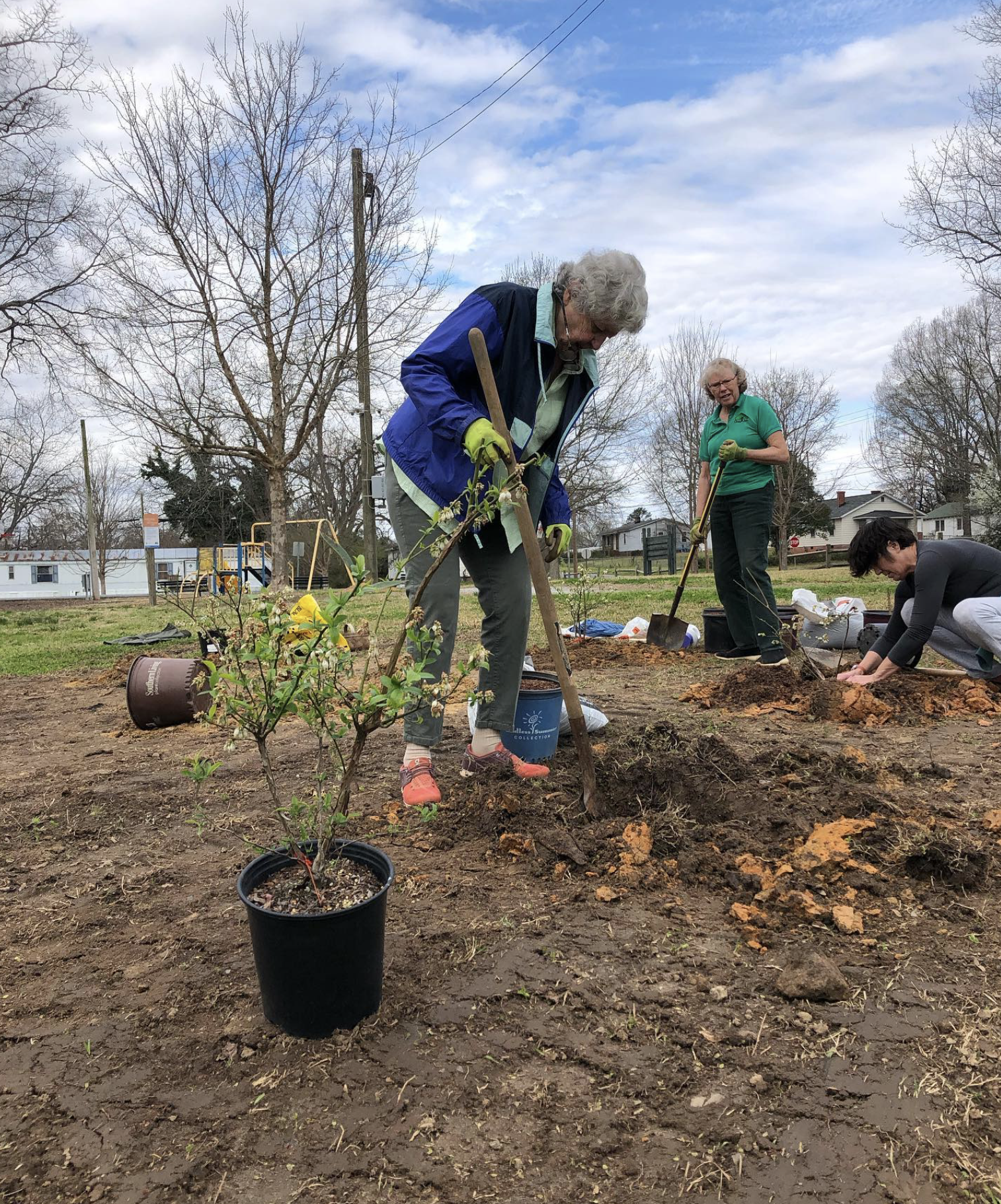 This is the fourth park they have enhanced with blueberry bushes. The other parks are Pine Haven, Martha Dendy, and Pine Street. Funding for the work at Oak Street came from a Community Assistance grant. The plants at the first three parks have already started bearing fruit. The freeze of this past weekend will mean no crop this year on these new ones at Oak Street Park.