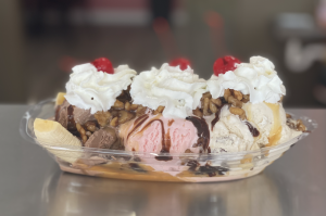 Laila’s is serving Hershey’s ice cream and so far, the favorite flavors are banana pudding, butter pecan, cappuccino crunch, chocolate, vanilla, and strawberry. The ice cream is served up in a cone, cup, shake or covered, topped, and smothered in a banana split. In the first two days of business Laila’s had to restock bananas to keep up with the demand for the banana split.