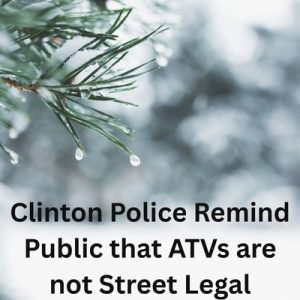 Because of this, operating an ATV on public streets or highways — whether inside or outside the Clinton city limits — is prohibited. Officers say individuals found driving ATVs on public roads may face enforcement action, including citations, and the vehicle may be towed at the owner’s expense.