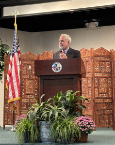 After brief remarks from Mayor McLean, Senator Danny Verdin addressed the audience speaking of the magnitude of the sacrifice of all who serve. Following Verdin’s remarks Mayor Mclean introduced the keynote speaker, Brigadier General Robin Stilwell.
