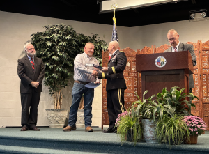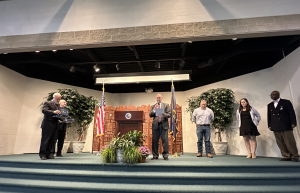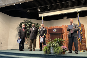 Following Stilwell’s remarks, South Carolina District 42 Rep. Doug Gilliam, himself a Veteran provided brief remarks and then recognized three Clinton Veterans and presented them with Flags flown over the State House and a certificate.