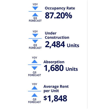 - Regional job growth continues to attract migrants from outside the market, bolstering multifamily demand