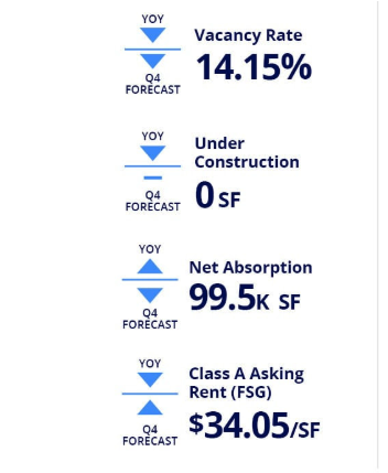 Class A asking rents are growing once more, averaging $34.05 per square foot, as out-of-market tenants, particularly from high-cost northeastern metros like Boston and New York, display significantly lower price sensitivity for top-quality spaces.