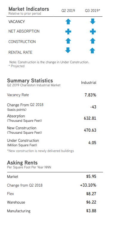 To download the complete report:Â 2019 Q2 Industrial Charleston Report