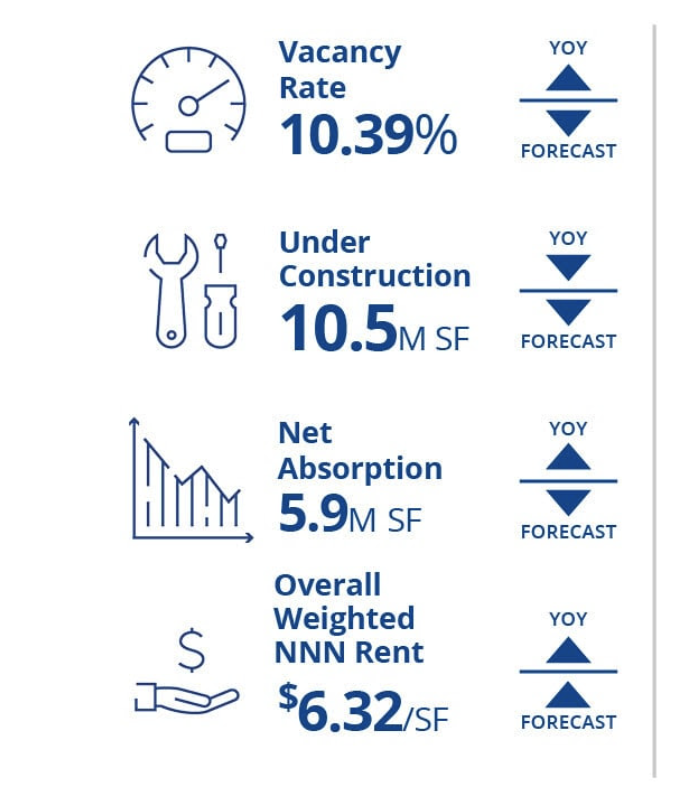 South Carolina saw major deals in the Upstate by third-party logistics firms and automotive OEMs drive nearly 4.9M square feet of net absorption statewide to close out 2024. Activity was uneven around the state, with strong absorption in the Greenville-Spartanburg and York County markets countered by net negative absorption in Charleston as move-outs pushed vacancy higher.