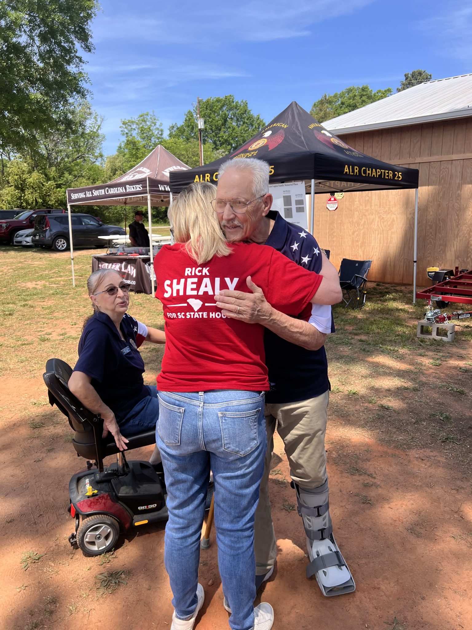 The event featured BBQ plates, music, a silent auction, and a 50/50 drawing. American Legion Riders chapters from across South Carolina made the trip to Laurens to stand with Post 25, and the local community turned out in force as well. One of the highlights of the afternoon came when Jim Peterson arrived and was greeted with lots of smiles and hugs.
