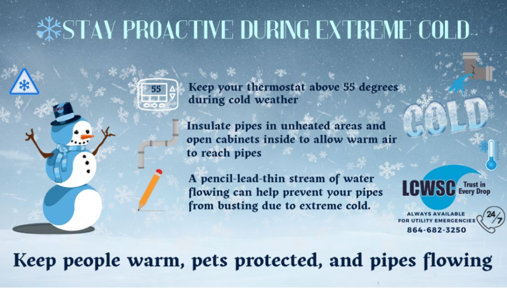 LCWSC officials note that winter weather—particularly prolonged freezing—can impact household plumbing and underground water lines, making resident preparation an important part of minimizing damage and service disruptions.