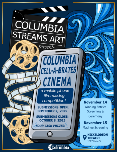 The City of Columbia’s Columbia Streams Art public art program announced the submission gateway for entries for the Columbia Cell-A-Brates Cinema smart phone filmmaking competition is now LIVE.