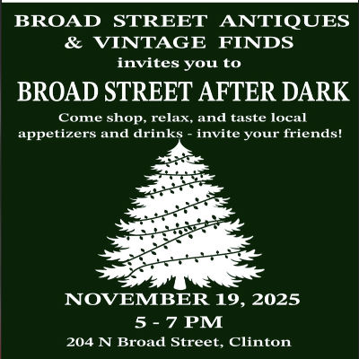 Come shop, relax, and taste local appetizers and drinks – invite your friends! Hosted by BROAD STREET ANTIQUES