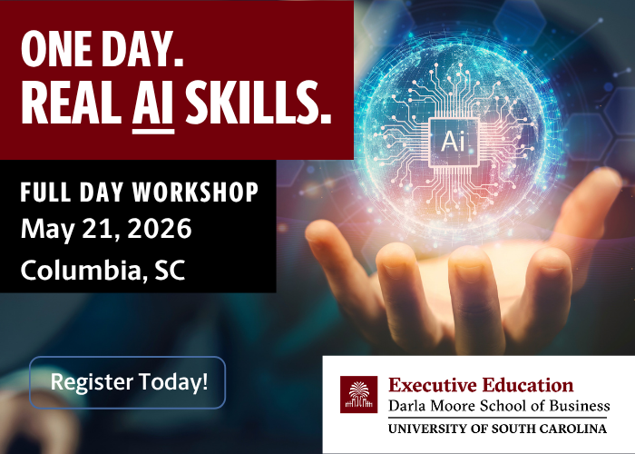 This workshop will be led by Drs. Özgür (Oz) İnce and Joel Wooten, two of the leading experts on AI at the Darla Moore School of Business. As members of the school’s AI Committee, they have helped lead the efforts to transform the business school’s AI curriculum and develop the next generation of business leaders. Both are award-winning teachers known for engaging, immersive, hands-on instruction featuring cutting edge AI tools.