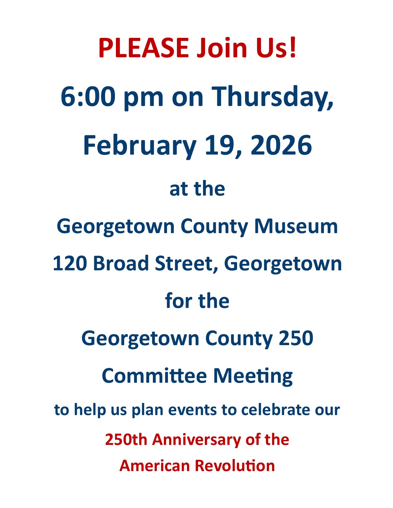 Georgetown County 250 Committee Meeting Notice