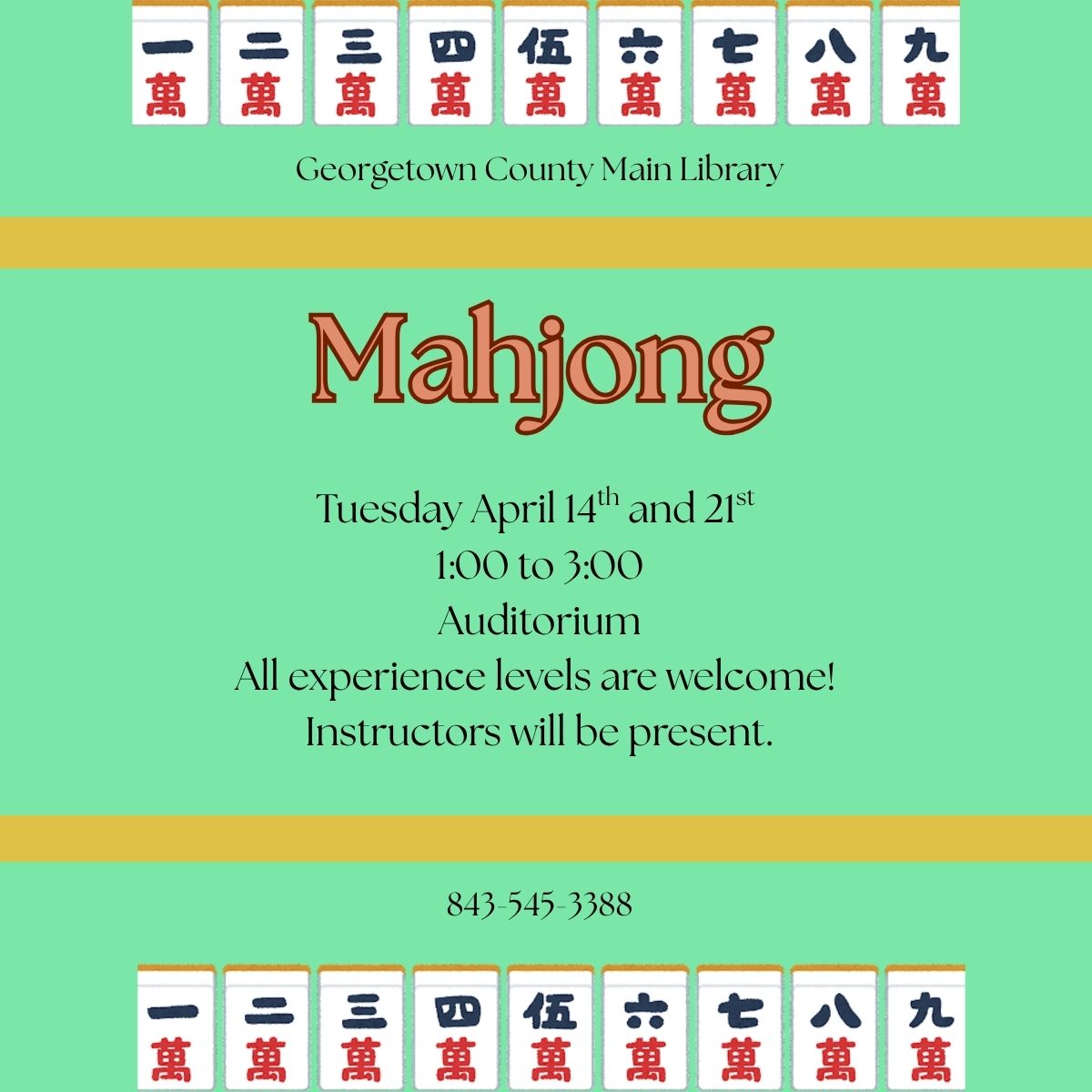 Mahjong Classes at the Georgetown Library