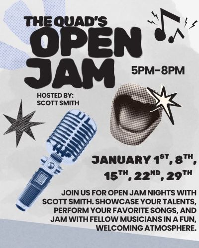 Join us every Thursday evening at The Quad for Open Mic Night! Whether you’re a musician, singer, poet, comedian, or just love supporting local talent, this is the place to be.