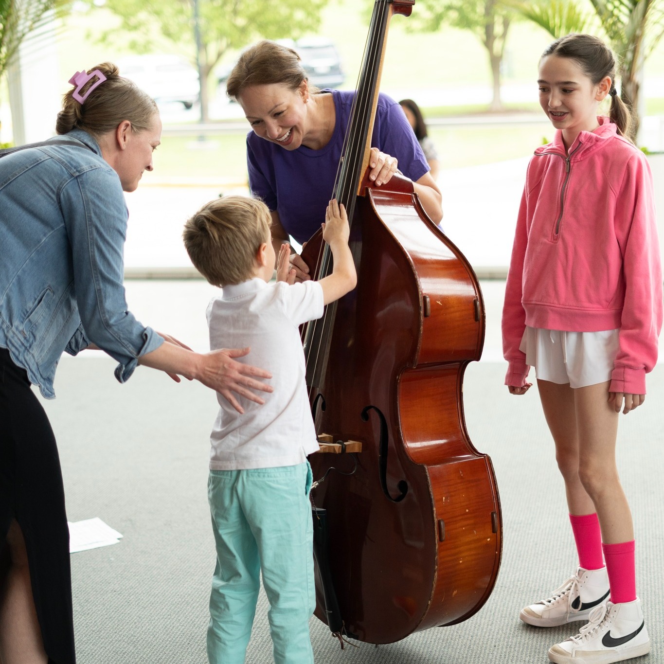 Child gets to experience a double bass at the 2024 Instrument Petting Zoo