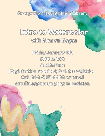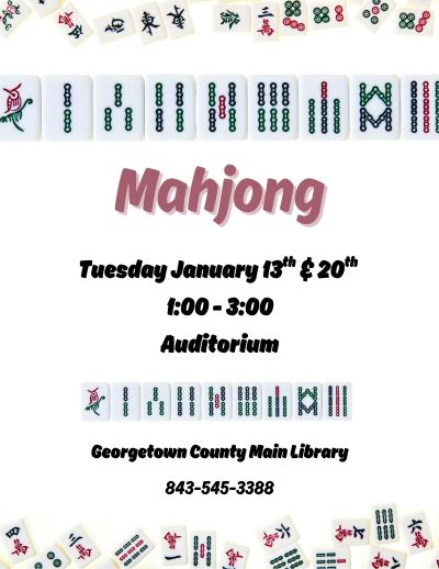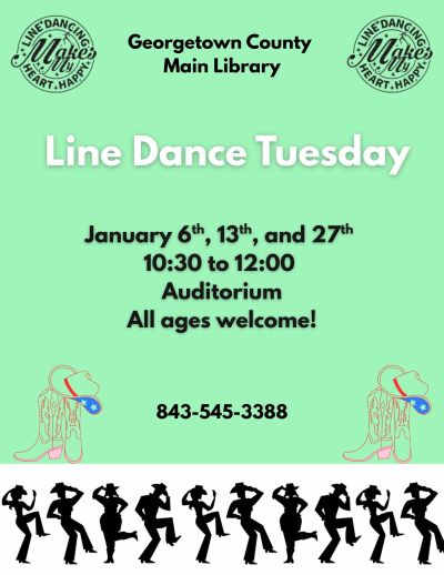 Join us Wednesdays in January from 10:30-11:00am in the DeBordieu-Cross Auditorium for stories, songs and early-literacy fun! For babies, toddlers, preschoolers and their caregiver(s). For more information call 843-545-3349.