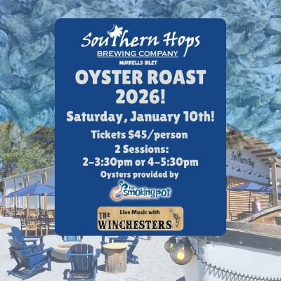 It's baaaack!! Join us for the Southern Hops Oyster Roast Murrells Inlet 2026 - Saturday, January 10th!!! We had a blast last year and would love to have you back to enjoy oysters roasted by our good friends from The Smoking Pot and live music by The Winchesters! There are 2 time slots available so…