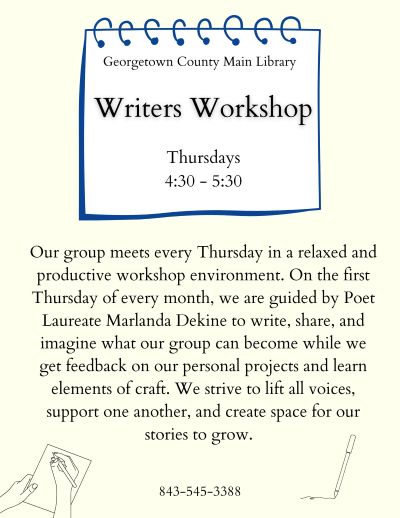 Our group meets every Thursday in a relaxed and productive work environment. We strive to lift all voices, support one another, and create space for our stories to grow.