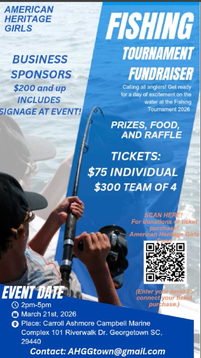 The Georgetown Historical Society is hosting its annual Cattails and Cocktails fundraiser on Saturday, March 21 from 2:00 – 5:00 pm at the Bobby Alford Pavilion, East Bay Park, with proceeds benefiting the Georgetown County Museum. The event features Lowcountry cuisine prepared by local volunteer hunters and fishermen, a retriever demonstration, "Turkey Talk" with turkey… |