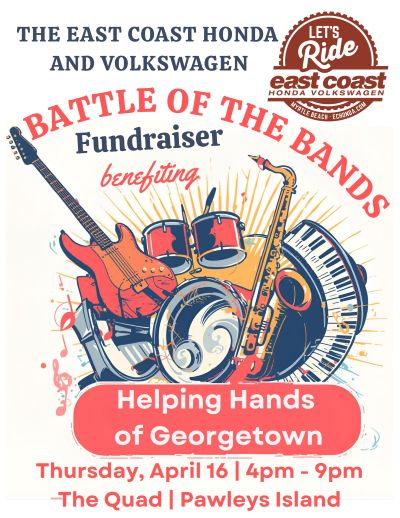 Helping Hands of Georgetown is excited to present its inaugural East Coast Honda Volkswagen Battle of the Bands Fundraising Event on Thursday, April 16th at The Quad in Pawleys Island,… |