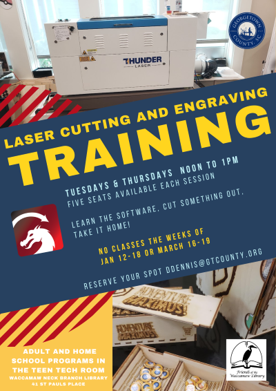 Adult Laser Cutting & Engraving Training @ Waccamaw Neck Branch