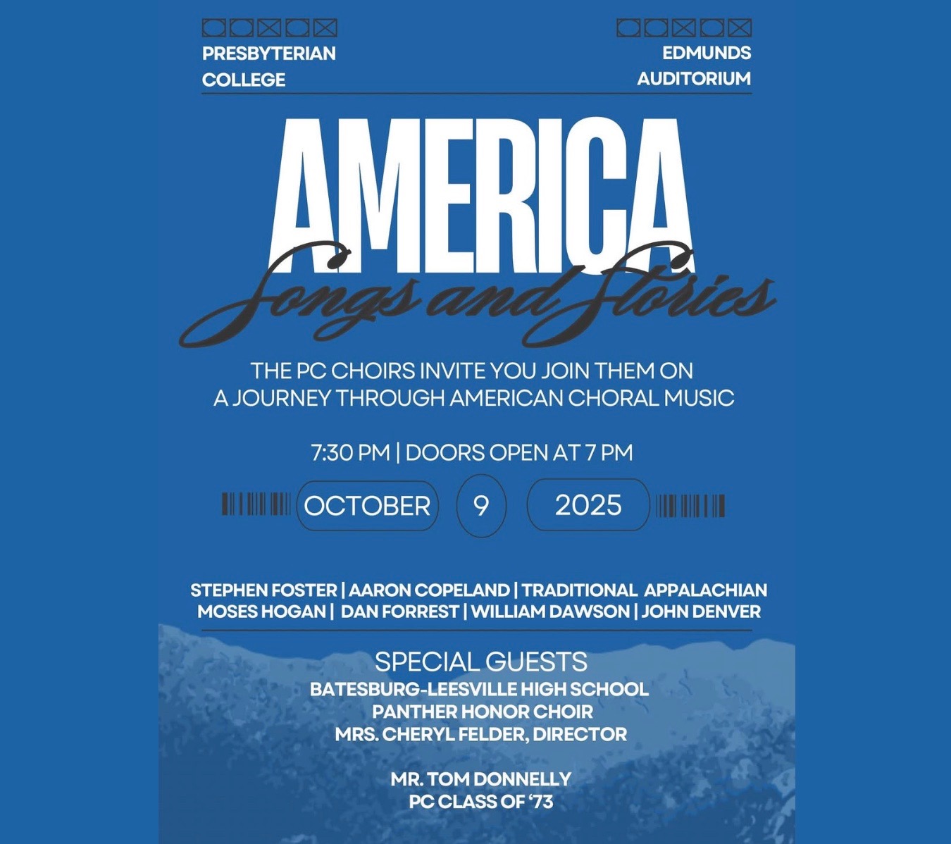 Presbyterian College 503 S Broad St, ClintonTHE PC CHOIRS INVITE YOU JOIN THEM ON A JOURNEY THROUGH AMERICAN CHORAL MUSIC