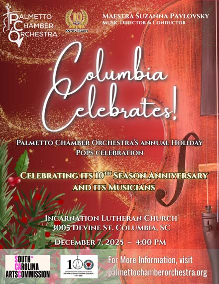 Celebrate the Holidays with the Palmetto Chamber Orchestra! Whether you’re celebrating Hanukkah, Christmas, Kwanzaa, or another seasonal holiday, the Palmetto Chamber Orchestra invites you to share in the joy of…