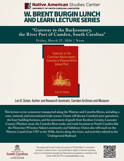 “Gateway to the Backcountry, the River Port of Camden, South Carolina” Lon D. Outen, Author and Research Assistant, Camden Archives and Museum This lecture covers commerce transported along the Wateree and Catawba Rivers, including astate, national, and international trade system. Outen will discuss Camden’s port operations, the boat-building business, and the movement of goods from… |